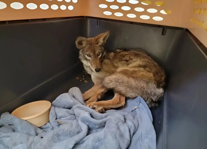 To everyoneâs surprise, it wasnât a dog at all. đž It was a coyote, soaked and shivering, with eyes wide in terror. The team quickly wrapped it in a towel and placed it into the van. They rushed him to the Bahde Wildlife Center, where veterinarians were already waiting.