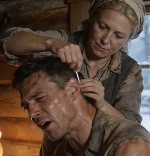 She brushed dust off his cheek.
