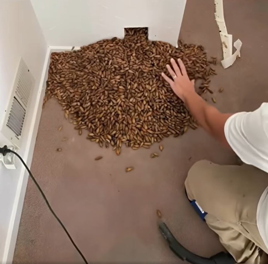 The next day, when a few drops of water began to fall from the ceiling, I finally decided to ask for help. I assumed it was mice or termites—or worse, moisture and mold. I called a pest control service. The inspector, an experienced and calm man, examined the walls carefully. Then he said we’d need to open a section. A gentle cut, a small crack… and from inside the wall, with a swish and a rush, came pouring out—no, not insects or ash, but… acorns.