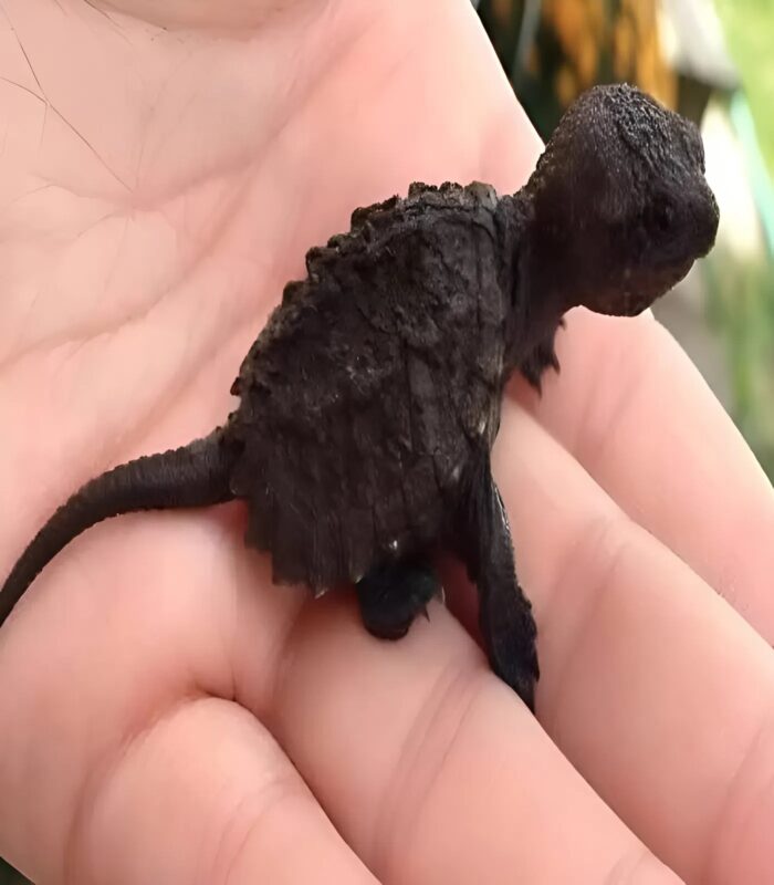 The little creature barely moved, its breathing shallow and uneven. Its tail appeared slightly injured, and its skin had a strange texture—unlike anything he’d seen before. Curious and concerned, the man gently picked it up with both hands and placed it into a small cardboard box. He didn’t know what it was exactly, but he knew it needed help.