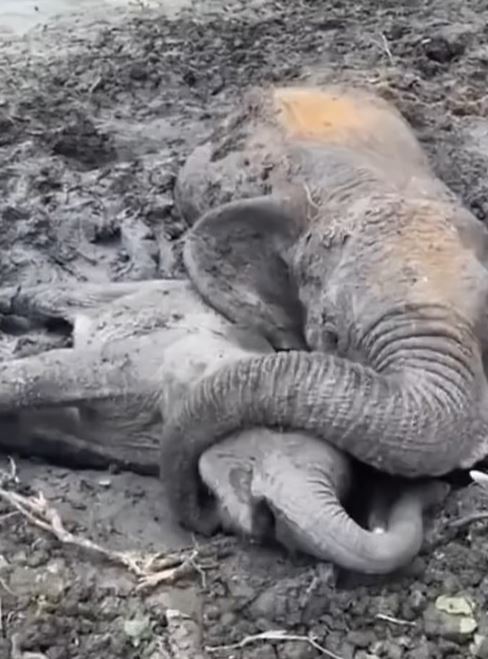 The image of a weary mother elephant, rising from the mud to embrace her calf, is more than a rescue story. It is a message — one that urges us to fight for life, for connection, and for the fragile balance of our planet.