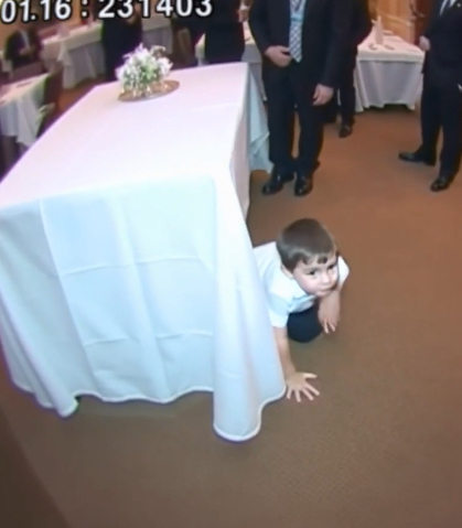 Ben nodded eagerly, slipping off my lap and taking my hand. We navigated through the room, dodging servers and guests as we approached the table he had pointed at. He ducked under the cloth once more, beckoning us to follow.