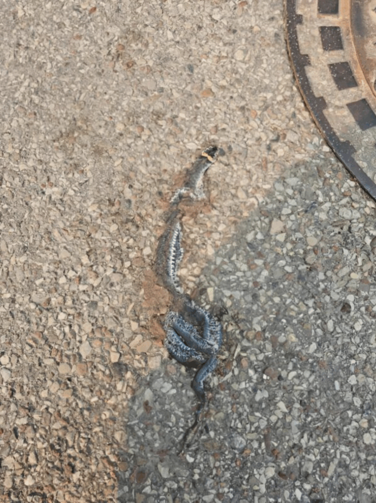 As I stepped closer, I realized what it was: a snake. A crushed one.