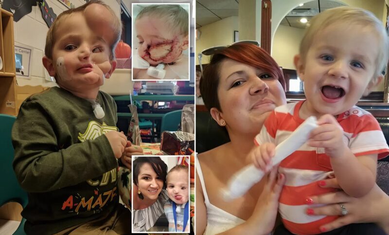 Brittany never forgot the sound of helicopter blades that day — the deafening rhythm that tried to drown out her terror. 🥺 She held her tiny son’s hand as his stretcher disappeared behind hospital doors, his face wrapped in blood-soaked bandages. Ryder was only 22 months old — too small to understand pain, too innocent to deserve what happened.