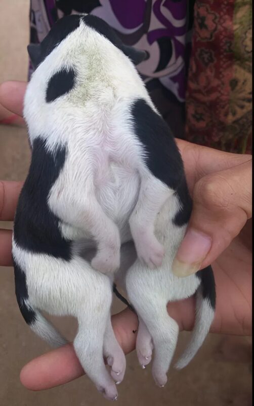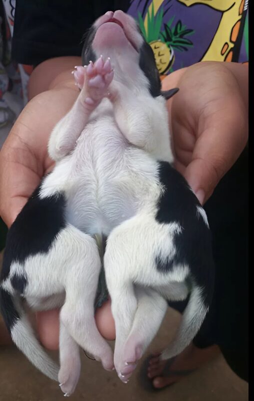 One puppy was unlike any she had ever seen. At first, she thought her eyes were playing tricks on her, but the truth was undeniable. The little black-and-white pup had two bodies joined at the chest. There were two sets of front legs, two sets of back legs, and even two tiny tails swishing weakly in the straw šāš¦ŗšāš¦ŗ. Vukitangitauās hands trembled as she lifted the pup carefully into a soft blanket. The entire village seemed to gather silently around, their faces etched with shock and disbelief.