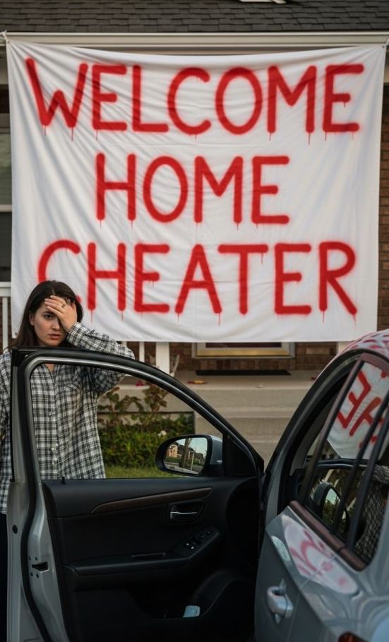 The moment I got out of the car and looked toward my house, a giant sign greeted me with the words: “Welcome home, Cheater” — and what really happened