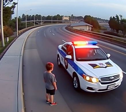 A police officer noticed a little boy—no older than three—wandering by himself along the edge