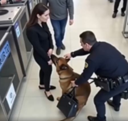 The drug sniffing dog at the Minneapolis & Las Vegas airports- caught on camera in Vegas